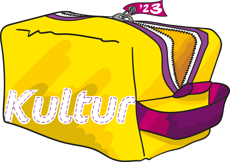 Seit der Vereinsgründung 2023 haben wir ein Logo – der Kulturbeutel wird aber weiterhin jedes Jahr als Hingucker für die aktuelle Kulturwoche für die Plakate und die Programmbroschüre neu illustriert.