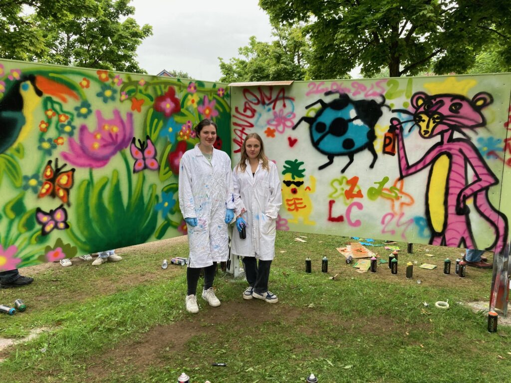 Die ersten Werke auf der „Kunstwand“ wurden von den Künstlern Sven Bliesener und Marlo Klinnert zur Wentorfer Kulturwoche erstellt. Jetzt ist die Wand für freies kreatives Arbeiten freigeben.