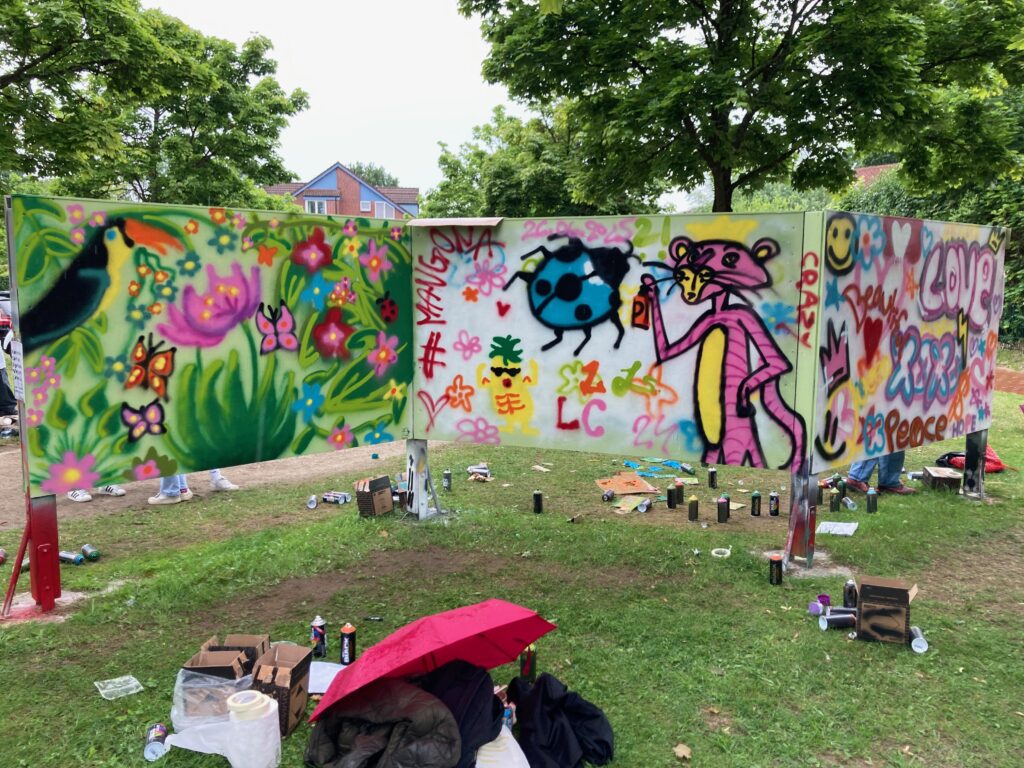 Wir pflegen auf dieser Seite eine Galerie mit Fotos der Kunstwand. Du hast gesprayt, gemalt, kreativ gearbeitet? Schick uns ein Foto an kunstwand@wentorfer-kulturwoche.de.